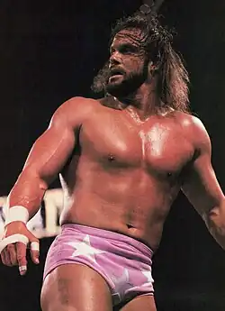 In June 1985, Savage signed with Vince McMahon's World Wrestling Federation (WWF).[2] He made his WWF debut on the July 6 episode of Championship Wrestling, defeating local competitor Aldo Marino. Billed as "the top free agent in pro wrestling", Savage's first appearances on Tuesday Night Titans featured several established managers (including Bobby "The Brain" Heenan, Jimmy Hart, Mr. Fuji, Johnny Valiant, and "Classy" Freddie Blassie) offering their services to Savage.[11] He declined their offers and chose Miss Elizabeth as his new manager on the August 24 episode of Championship Wrestling.[2][11][4] His gimmick was a crazed, ego-maniacal bully who mistreated Miss Elizabeth and threatened anyone who even looked at her.[16] He made his pay-per-view (PPV) debut for a 16-man tournament at The Wrestling Classic on November 7, defeating Ivan Putski, Ricky "The Dragon" Steamboat, and the Dynamite Kid before losing via countout in the finals to Junkyard Dog.[22]