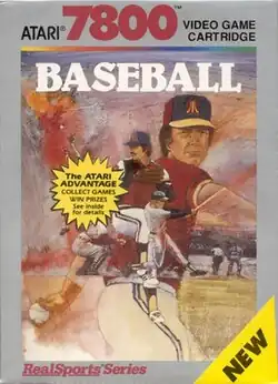 ![]() Atari 7800 cover showing the alternative title of "Baseball" and the "RealSports" trademark | |