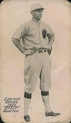 Kelly is the younger brother of Hall of Famer George "High Pockets" Kelly, and spent spring training with his brother's New York Giants team in 1920.[4] Coach Christy Mathewson like his size, assortment of pitches, and his accurate pitching, but he did not make the team.[5] His uncle, Bill Lange, and cousin, Rich Chiles, also played Major League Baseball.[1] Kelly died at the age of 63 in Millbrae, California and is interred at Oak Hill Memorial Park in San Jose, California.[1]