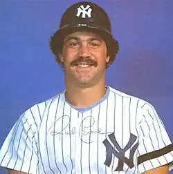 Cerone's production dipped in the 1981 season, as he hit .244 with two home runs and 21 RBI in 71 games. He told the Associated Press in October he had been getting threatening telegrams and phone calls for over a month, forcing him to change his phone number.[4] However, the Yankees reached the post-season once again. After a tough loss in Game 3 of the American League Divisional Series (ALDS) against the Milwaukee Brewers, Yankee owner George Steinbrenner accused the team of showing him up and not playing well. Cerone swore at Steinbrenner, who responded, "You're gone next year. Nobody talks to me that way."[5] Cerone left the room, returned, and shouted, "What do you know about it? You never played this game!"[5] Steinbrenner's only response was a glare.[5] In the playoffs, Cerone hit .333 with a home run and five RBI in the Yankees victory over the Brewers in the ALDS. In the American League Championship Series against the Oakland Athletics, Cerone struggled with a .100 batting average, however, the Yankees won the series and reached the 1981 World Series. In the World Series against the Los Angeles Dodgers, Cerone hit .190 with a home run and three RBI, as the Yankees lost to Los Angeles in six games.