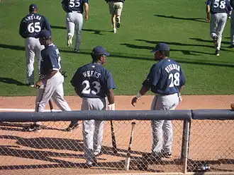 Rickie Darnell Weeks Jr. (born September 13, 1982) is an American former professional baseball second baseman and coach in Major League Baseball (MLB). Between 2003 and 2017, he played in MLB for the Milwaukee Brewers, Seattle Mariners, Arizona Diamondbacks, and Tampa Bay Rays. He was an MLB All-Star in 2011. After retiring as a player, Weeks has worked in the Brewers organization, serving as associate manager in 2024 and 2025.