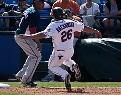 ![]() Mackowiak with the New York Mets in 2009 spring training | |