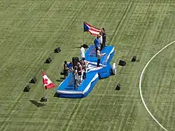 On June 19, 2010, Alomar was inducted into the Canadian Baseball Hall of Fame in St. Marys, Ontario.[39] The 2011 Caribbean Series was dedicated to him and the series was followed by his induction into the Caribbean Baseball Hall of Fame.[40] On March 31, 2011, he was named as a special assistant with the Blue Jays.[41] In 2012, he began hosting the annual Tournament 12 (T12) showcase at Rogers Centre for Canadian baseball prospects; major leaguers Josh Naylor, Mike Soroka, and Abraham Toro are alumni of the tournament.[42][43] On July 31, 2011, the Blue Jays retired Alomar's number 12 at Rogers Centre. He was the first Blue Jay to be so honored.[44] The number has since been unretired after the Blue Jays severed all ties to him due to an allegation of sexual misconduct.[45][46]