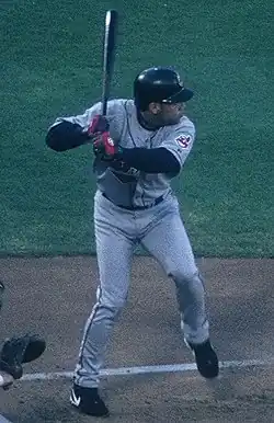 On November 24, 1998, Alomar signed a four-year contract with the Cleveland Indians, joining his All-Star brother, Sandy Jr. It was in Cleveland that Alomar had two of his finest seasons. In 1999, he hit .323 and set career highs with 24 home runs, 120 RBI, 138 runs, 99 walks, a .422 on-base percentage and a .533 slugging percentage. In 2001, he batted .336/.415/.541, with 20 home runs, 100 RBI, and 30 steals.[16] Cleveland made the playoffs in 1999, losing in the ALDS to the Boston Red Sox; in 2001, they again made the playoffs, but lost to the Seattle Mariners in the ALDS. Alomar finished third in AL MVP voting in 1999 and fourth in 2001.[16]