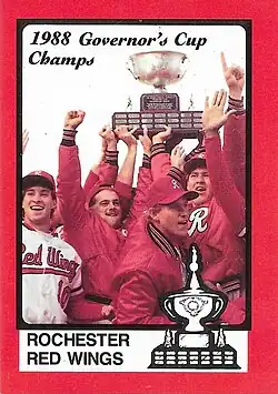 1. ^ The IL Regular Season Pennant symbolized the League Champion until the Governors' Cup was established in 1933. Since 1933, the IL has officially recognized both the Pennant Winner and the Governors' Cup as League Champions. The Red Wings captured Governors' Cups in every decade since it was established except the 1940s, a decade in which they won the IL Pennant in 1940. Since the IL was separated into divisions in 1988, most people have come to consider the Governors' Cup winner to be the league champion, although in the early years most still considered the Pennant Winner to be the true league champion. The league still officially recognizes both titlists as champions.