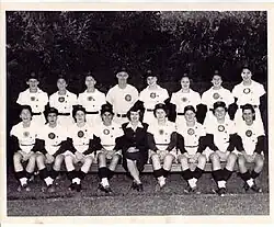 Back, L-R: Jacquelyn Kelley, Rose Gacioch, Eleanor Callow, Bill Allington (Manager), Marie Mansfield, Amy Irene Applegren, Carol Habben, Jean Buckley. Front, L-R: Dorothy Harrell Doyle, Dorothy Ferguson, Dolores Lee, Joan Berger, Dottie Green (Chaperone), Alice Pollitt, Ruth Richard, Helen Nordquist, Migdalia Perez.