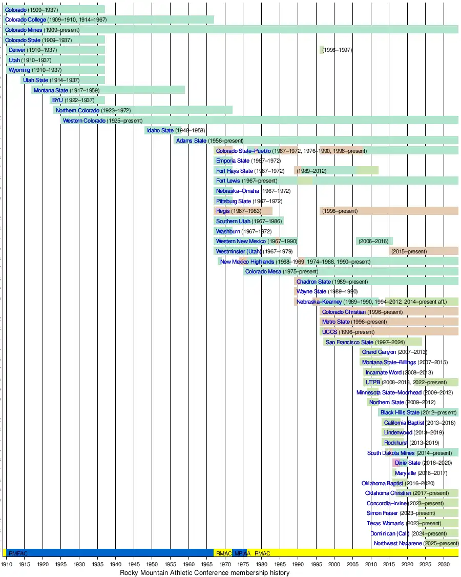 | Formerly | Colorado Faculty Athletic Conference (1909–1910) Rocky Mountain Faculty Athletic Conference (1910–1967) |