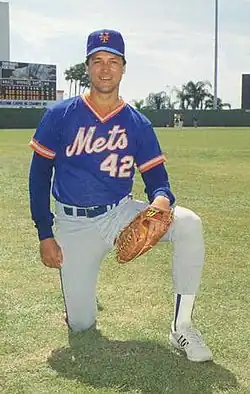Roger Alan McDowell (born December 21, 1960) is an American former professional baseball right-handed relief pitcher who played in Major League Baseball from 1985 to 1996. He played for the New York Mets, Philadelphia Phillies and Los Angeles Dodgers in the National League and the Texas Rangers and Baltimore Orioles of the American League. McDowell was a key component in the 1986 World Series champion New York Mets and was the winning pitcher in the deciding Game 7. His major league record of decisions was 70 wins and 70 losses. McDowell served as the Atlanta Braves pitching coach from 2006 to 2016. McDowell's family is of Scottish descent.