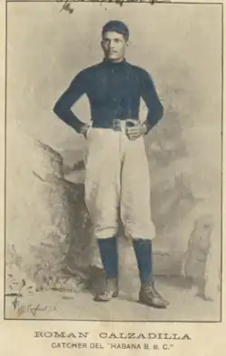 Román Calzadilla was a Cuban professional baseball catcher and second baseman in the Cuban League. He played for 11 seasons from 1889 to 1902 for Matanzas, Progreso, Aguila de Oro, Habana and Fiesta. He was elected to the Cuban Baseball Hall of Fame in 1945.[1]