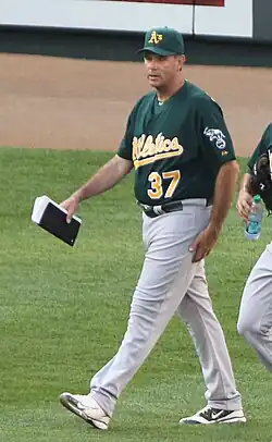 ![]() Romanick as pitching coach for the Oakland Athletics in 2011 | |