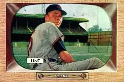 Lint, a 33-year-old rookie, spent the entire 1954 season with the St. Louis Cardinals as a relief pitcher. He made his major league debut on April 13 against the Chicago Cubs, pitching two innings and allowing no runs. The first batter he faced was Bob Talbot and his first strikeout, also recorded in that game, was Randy Jackson.[2]
