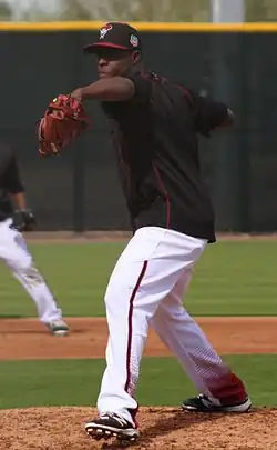 In 2016, De La Rosa opened the season in the Diamondbacks' rotation but suffered elbow injuries all year.[10] In September, the team elected to end De La Rosa's season early.[11] He was non-tendered by Arizona on 2 December 2016.[12]