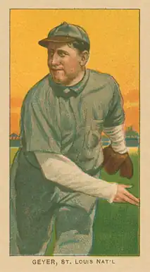 Jacob Bowman "Rube" Geyer (March 26, 1884 – October 12, 1962) was an American Major League Baseball pitcher who played for the St. Louis Cardinals from 1910 to 1913.[1] His key pitch was the drop ball.[2]