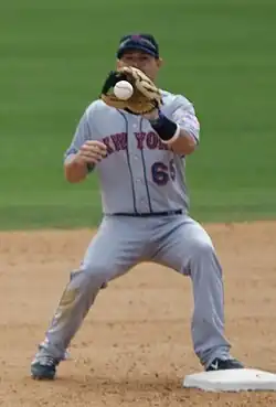 He signed a minor league deal, including an invitation to Spring Training, with the New York Mets before the 2010 season.[14] With the thyroid disease of Mets' starter, José Reyes, Adams was one of three contenders to temporarily replace Reyes, along with Alex Cora and Rubén Tejada.[15] Adams is considered "an upgrade offensively from Cora and the unknown Tejada", but "no better a defensive replacement (career UZR/150 of -13.5) than the other two." [Italics added.][15] However, Adams did not make the team out of spring training.[16][17] Adams was "earmarked for Buffalo."[18]