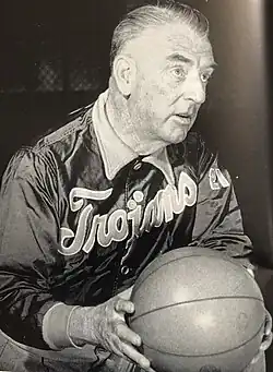 His accomplishments as a coach still stand today – his 40-game winning streak in basketball against UCLA, compiled from 1932 to 1942, and continued in 1946, stands as the longest winning streak by any coach against a single opponent in the history of college basketball. Only two other coaches have duplicated his achievement of leading teams to both the Final Four and the College World Series. In 1966, he became a member of the charter class of inductees to the American Baseball Coaches Association Hall of Fame, and in 1978 he was elected to membership in the Naismith Memorial Basketball Hall of Fame. He was among the 2007 class of inductees to the USC Athletic Hall of Fame[9] He was inducted into the Pac-12 Basketball Hall of Honor during the 2012 Pac-12 Conference men's basketball tournament, March 10, 2012.[10]