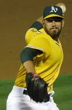 ![]() Moll pitching for the Oakland Athletics | |