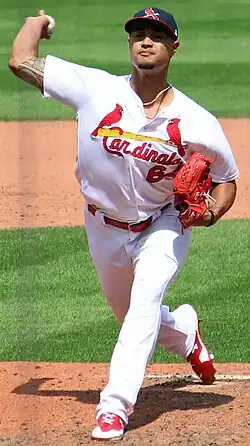 He pitched in 12 games for the Cardinals in 2016, going 0-0 with a 6.00 ERA, as in 9 innings he gave up 12 hits, walked 6, and struck out 7.[15] He was optioned to Triple-A Memphis to start the 2017 season.[16] He spent 2017 between Memphis and St. Louis; with the Cardinals, he pitched to a 3-3 record, a 2.55 ERA, and 34 strikeouts in 42+1⁄3 innings pitched.