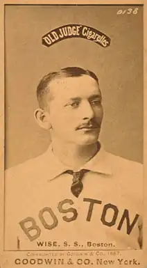 Playing for Boston through 1888, Wise was mostly a left-handed hitter, but he sometimes batted right-handed on a whim. He became the first 100-strikeout hitter in the major leagues in 1884, and he was often erratic on defense, especially when throwing to first base.[3] He sustained an injury in 1886, requiring a move to first base, and he had off-and-on arm difficulties for the rest of his career. Still, he had a stellar offensive season in 1887, hitting .334.[3]