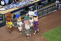 The Johnsonville Sausage Race (known as the Famous Racing Sausages or the Sausage Race) is a race of sausage mascots held during the middle of the sixth inning at every home game of the Milwaukee Brewers. The Sausage Race began as a promotion for the Klement's Sausage Company, located in Milwaukee, Wisconsin, whose sausages were served at American Family Field (and previously at Milwaukee County Stadium), the home of the Brewers. In 2021, Johnsonville sausages began being served at American Family Field.[1]