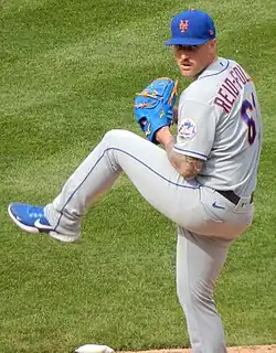 On January 27, 2021, Reid-Foley was traded to the New York Mets with right handed pitchers Yennsy Díaz and Josh Winckowski for starter Steven Matz.[26] Reid-Foley made his first appearance for the Mets on April 22, in relief against the Chicago Cubs. He pitched three perfect innings and recorded four strikeouts.[27] After the game, he was sent back down to the Mets' alternate site. He was recalled on May 11 after Jacob deGrom was placed on the injured list.[28] After relieving starter Taijuan Walker in a game on May 17 against the Atlanta Braves, Reid-Foley struck out five batters in three perfect innings and earned his first win of the season.[29] He also got on base for the first time in his career, drawing a walk in the fifth inning.[30] On May 31, he was demoted to the Triple-A Syracuse Mets to create room on the active roster for Seth Lugo.[31]