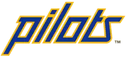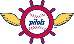 The franchise was owned by Pacific Northwest Sports, Inc. (PNSI), led by Dewey Soriano, a former Rainiers pitcher and general manager and former president of the Pacific Coast League.[2] The team's nickname of "Pilots" came from Soriano's part-time job as a harbor pilot and the city's association with the aviation industry.[3][4] The team colors were royal blue and gold (with accessory red in the logo: helm and baseball seams).