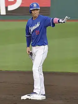Seiji Uebayashi (上林 誠知, Uebayashi Seiji; born August 1, 1995) is a Japanese profesisonal baseball outfielder for the Chunichi Dragons of Nippon Professional Baseball (NPB). He has previously played in NPB for the Fukuoka SoftBank Hawks.