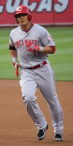 Shin-Soo Choo (Korean: 추신수; Hanja: 秋信守; Korean pronunciation: [tɕʰu.ɕin.su]; born July 13, 1982) is a South Korean former professional baseball outfielder. He played in Major League Baseball (MLB) for the Seattle Mariners, Cleveland Indians, Cincinnati Reds, and Texas Rangers, before ending his career in the KBO League with the SSG Landers. Choo left MLB as the record holder for most career home runs (218) hit by an Asian-born player in the league,[1] which was later passed by Shohei Ohtani.[2]