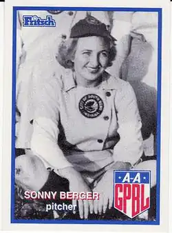 Margaret Eloise "Sonny" Berger (December 24, 1922 – January 25, 2015) was a pitcher who played from 1943 through 1944 in the All-American Girls Professional Baseball League (AAGPBL). Listed at 5' 3" (1.60 m), 129 lb. (59 k), Berger batted and threw right-handed. She was nicknamed 'Sonny' by her teammates and close friends.[1][2]