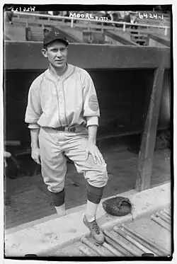 Left-handed pitcher Jim Mooney played for the 1929 Spartans. A few weeks into the 1929 season, Mooney was assigned to Spartanburg by the Chattanooga Lookouts, who wanted Mooney to work on improving his pitching control.[116] At age 22, Mooney compiled a 6–10 record with a 4.85 ERA pitching for Spartanburg, walking 46 in 124 innings. After remaining in the South Atlantic League with Charlotte in 1930, Mooney made his major league debut in 1931.[117] Mooney pitched in the major leagues from 1931 to 1934 for the St. Louis Cardinals and New York Giants, where he had a 17–20 career record.[117] He was a member of the 1934 World Series champion St. Louis Cardinals, nicknamed as the Gashouse Gang.[118] Mooney pitched a scoreless inning in the 9th inning of Game 4 of the World Series against the Detroit Tigers.[119]