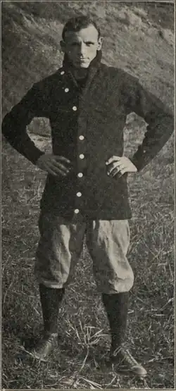 A collegiate athletics star, Zora Clevenger played for Spartanburg in 1909 in his third and final season of professional baseball at age 27. A shortstop, Clevenger batted .208 while playing in 39 games Spartanburg.[25] Clevenger had played on the football, basketball and baseball teams for the Indiana Hoosiers where he was the captain of all three teams.[26] He began coaching all three sports upon his graduation from Indiana University.[27] From 1904 to 1906, Clevenger served as the basketball and baseball coach at Indiana. His time at Indiana was followed by a stint at Nebraska Wesleyan that included his time with Spartanburg, as from 1908 to 1911 he coached all three sports at the school.[26] From 1911 to 1915, Clevenger coached all three sports at Tennessee.[28] His final collegiate coaching stint was at Kansas State, where he coached all three sports between 1916 and 1921.[29] Following his time at Kansas State, Clevenger served as the athletic director at Missouri from 1921 to 1923. In 1923, returned to Indiana University where he served as athletic director for 23 years before his retirement in 1946. Clevenger was inducted into the College Football Hall of Fame in 1968.[30]