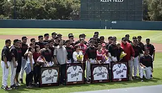 The Stanford Cardinal baseball team represents Stanford University in NCAA Division I college baseball. Along with most other Stanford athletic teams, the baseball team participates in the Atlantic Coast Conference. The Cardinal play their home games on campus at Klein Field at Sunken Diamond, and they are currently coached by David Esquer.