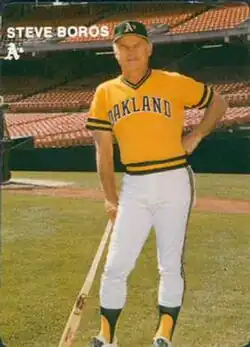 In November 1982, Boros was hired as the manager of the Oakland Athletics, replacing Billy Martin.[51] Baseball writer Peter Gammons called Boros "quiet, thoughtful and intelligent", while one American League manager said the move "could be one of the best managerial hirings in 10 years."[52] Martin, who had implemented his trademark "Billy Ball" in Oakland, was known for his hot-tempered approach to the game. The Sporting News noted the difference in style between Martin and Boros: "The volatile, dirt-kicking days are over for the time being in Oakland. Steve Boros, the man named to succeed Billy Martin, will live on the quiet side of Manager's Row. . . . Unlike Martin, Boros said he will not rant and rave. He has been kicked out of just two games in his 25-year pro baseball career."[40]