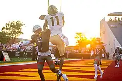 Following the July 30, 2021 announcement of the University of Texas at Austin and the University of Oklahoma both moving from the Big 12 Conference to the Southeastern Conference,[21] the world of college athletics faced the prospect of realignment once again. The Big 12 responded on September 10 by adding three schools from the American Athletic Conference (The American) and BYU, an FBS independent and otherwise a member of the non-football West Coast Conference, effective in 2023.[22] The American in turn responded on October 21 by adding six schools from Conference USA (C-USA), with 2023 as the most likely entry date.[23][24] Following this move, rumors began to circulate that the Sun Belt was planning to take on another three members (the University of Southern Mississippi (Southern Miss or USM), Marshall University, and former Sun Belt member Old Dominion University) from C-USA, likely in response to that conference's remaining teams worried of the conference folding.[25] These moves would help to establish the market areas for the Sun Belt and The American, which cover similar geographic footprints. The American would now have most of its members in metropolitan areas, while the Sun Belt would instead have its members in smaller college towns.