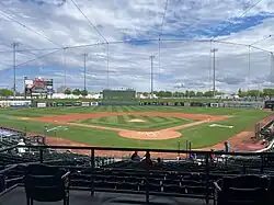 Surprise Stadium is a baseball venue located at the Surprise Recreation Campus athletic facility in Surprise, Arizona, United States. The stadium opened in 2002 and seats 10,714 people.[1][4][6] It is the spring training facility for the Kansas City Royals and the Texas Rangers.[4] It is also the home of the Arizona Fall League's Surprise Saguaros.[3] The venue was previously the home of the Golden Baseball League's Surprise Fightin' Falcons, which disbanded after their only season in 2005. Surprise Stadium is owned and managed by the City of Surprise Sports and Tourism Department.
