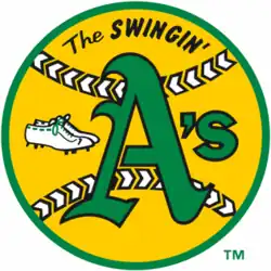 The Swingin' A's was the nickname for the Oakland Athletics (A's), primarily used in reference to the Oakland teams that dominated the American League from 1971 to 1975. The A’s won three consecutive World Series championships in 1972, 1973 and 1974. They are widely recognized as being among the best teams in baseball history.[1] The team won five consecutive American League West Division titles and three American League pennants en route to those three World titles. They were the first team to win three straight World Series since the New York Yankees won five in a row from 1949 to 1953. They and the Yankees are the only franchises to have completed a three-peat, and no team would do so again until the Yankees won three straight from 1998 to 2000.