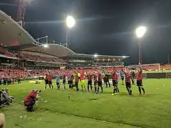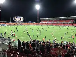 The Western Sydney Wanderers played most of their homes games at the stadium during the 2016–17 A-League season while Parramatta Stadium was rebuilt.[24] Home games against Sydney FC, Melbourne Victory and Perth Glory were played at the nearby ANZ Stadium.[25] The Wanderers played their first home game at the ground on 23 October 2016 against the Newcastle Jets.[26]