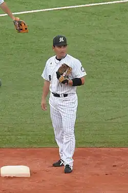 Tadahito Iguchi (井口 資仁, Iguchi Tadahito; born December 4, 1974), nicknamed "Gucci",[1] is a Japanese served professional baseball second baseman and former manager of the Chiba Lotte Marines of Nippon Professional Baseball (NPB).