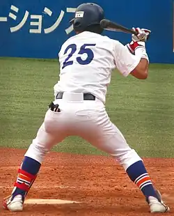 During the February spring camp in Okinawa, he showed early promise by hitting relatively well during batting practice sessions and intra-squad games. He even went 4-for-5 during a practice game against Samsung Lions in the KBO League.[9] He continued his productive streak, and eventually made it to the starting roster for the pre-season exhibition games. On March 4, he hit a 2-run homerun from Softbank Hawks' Kenji Otonari, and became the first Hanshin rookie to hit a home run in an exhibition game since Takashi Toritani in 2004. Fellow rookie Tsuyoshi Ishizaki also recorded the win that day, making them the first Hanshin rookies to record a victory and homerun in an exhibition game since Masashi Fujiwara and Akinobu Okada in 1980.[10] He batted .267 in all of his exhibition game appearances, and earned himself a spot in the main squad's opening day roster. He decided to skip his university graduation ceremonies in order to attend the season opener,[11] and witnessed the Tigers notch their first victory for the season, and first opening day walk-off win in 74 years.[12]