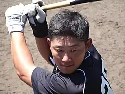 As a 6 year old, playing catch with an Akinobu Okada signed ball was his inspiration to start playing baseball where he played for Edogawa South Little Seniors.[1] At Shutoku High School, he played mostly as a pitcher with time spent at short stop where he was the ace and batted 4th. In summer of his junior year he reached the best 8 of the Tokyo tournament while in spring of his senior year he reached the Tokyo tournament semi-finals where he also hit a home run in the second game against Meisei High School. In summer of his senior year he showed great poise in pitching against Kanto Daiichi High School in the tournament final. He also hit a come from behind RBI in the 7th inning. In the 8th inning however due to leg discomfort, he came off the mound where his team went down in a walk-off loss, missing his chance at reaching the Japanese High School Baseball Championship. He hit a total of 18 homeruns in his high school career.