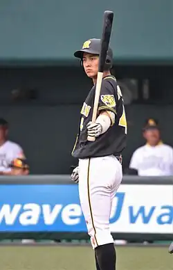 He was the Hanshin Tigers' 3rd round pick in the 2017 Nippon Professional Baseball draft. He inked a 60 million yen contract with the Tigers for a 10 million yen annual salary.[6] He was assigned the jersey number 4.[7] The 1st round pick of the same draft, pitcher Kosuke Baba, was his teammate in high school.[8]