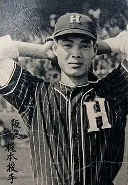 Takao Kajimoto (梶本 隆夫; April 8, 1935—September 23, 2006) was a left-handed Japanese baseball pitcher for the Hankyu Braves from 1954 to 1973. He won 254 games and was a 12-time All-Star during his career. He is a member of the Japanese Baseball Hall of Fame and Meikyukai.
