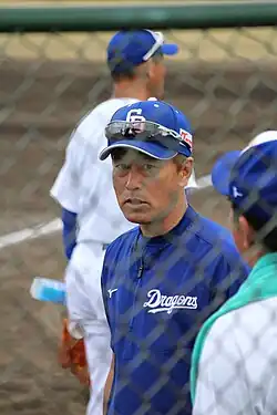 Takayuki Ohnishi (大西 崇之, Ōnishi Takayuki; born July 2, 1971) is a Japanese former professional baseball outfielder. He currently serves as a major league team coach for the Fukuoka SoftBank Hawks of Nippon Professional Baseball (NPB). He played in NPB from 1995 to 2006 for the Chunichi Dragons and Yomiuri Giants.