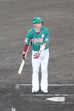![]() Iwasaki with the Tohoku Rakuten Golden Eagles | |