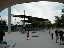 The Terry Park Ballfield (also known as the Park T. Pigott Memorial Stadium) is a historic site[3] in Fort Myers, Florida, United States. The park is named after the family who donated the land in the 1920s. For years the stadium hosted Major League Baseball spring training, as well as a dozen years of Florida State League baseball. The stadium hosted the Philadelphia Athletics, Cleveland Indians, Pittsburgh Pirates, and Kansas City Royals spring training through the years. Terry Park was also home to some early minor league baseball, most notably the Fort Myers Palms and Fort Myers Royals, both belonging to the Florida State League.[4] Hall of Famers Babe Ruth, Ty Cobb, Roberto Clemente, Jimmy Foxx, Bob Feller, Tris Speaker, and George Brett are some of the notable players who have played at Terry Park Field.