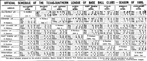 The league's inaugural schedule, as published in The Galveston Daily News on April 8, 1895