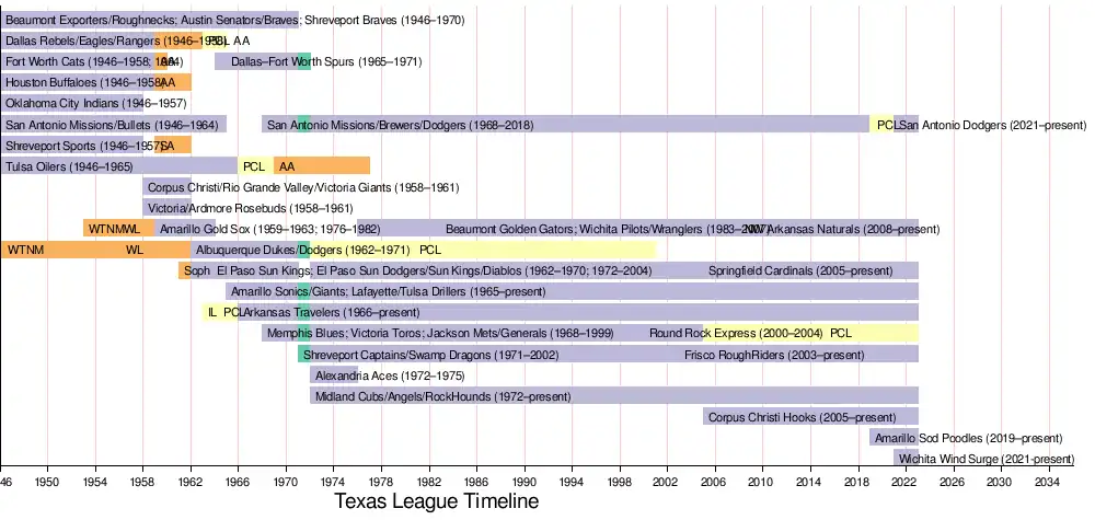 The start of the 2020 season was postponed due to the COVID-19 pandemic before ultimately being cancelled on June 30.[4][5] As part of Major League Baseball's 2021 reorganization of the minor leagues, the Texas League was temporarily renamed to "Double-A Central" for the 2021 season.[6] Following MLB's acquisition of the rights to the names of the historical minor leagues, the league switched back to its historical name beginning with the 2022 season.[7]