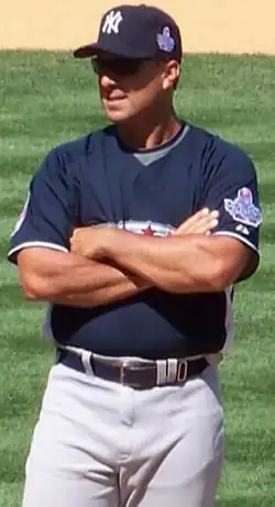 Constantino "Tino" Martinez (born December 7, 1967) is an American former professional baseball player. He played in Major League Baseball (MLB) for the Seattle Mariners, New York Yankees, St. Louis Cardinals, and Tampa Bay Devil Rays from 1990 through 2005. He also served as a hitting coach for the Miami Marlins in 2013. He was also nicknamed "The Bam-tino" after his home run in Game 1 of the 1998 World Series.[1] Formerly a third baseman, Martinez was the first round draft pick for the Seattle Mariners in 1988 out of the University of Tampa, where he starred during his time on campus. During his 16-year MLB career, he scored 1,009 runs, drove in 1,271 runs, and hit 339 home runs. He had 100 or more RBI in six different seasons and was twice named to the All-Star team.
