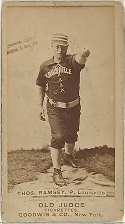 Thomas H. "Toad" Ramsey (August 8, 1864 – March 27, 1906) was an American Major League Baseball player who pitched in the majors from 1885 to 1890. Ramsey spent his entire career in the American Association, split between playing for the Louisville Colonels and St. Louis Browns. He is sometimes credited with inventing a pitch, the knuckleball,[1] and was one of the top pitchers in the Association for more than two years, with statistics that put him in the top five in multiple pitching categories.