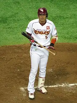 93. ^ "「身が引き締まる思い」松井稼、岩村選手がユニフォーム姿を初披露!" ["It's a sobering experience." Kazuo Matsui and Iwamura unveil their uniforms for the first time!] (in Japanese). Tohoku Rakuten Golden Eagles. 30 January 2011. Retrieved 20 December 2020.
