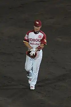 103. ^ "2013年「ファンクラブデーユニフォーム」発表!" [Announcing the 2013 "Fan Club Day Uniforms"!] (in Japanese). Tohoku Rakuten Golden Eagles. 26 November 2012. Retrieved 28 December 2020.